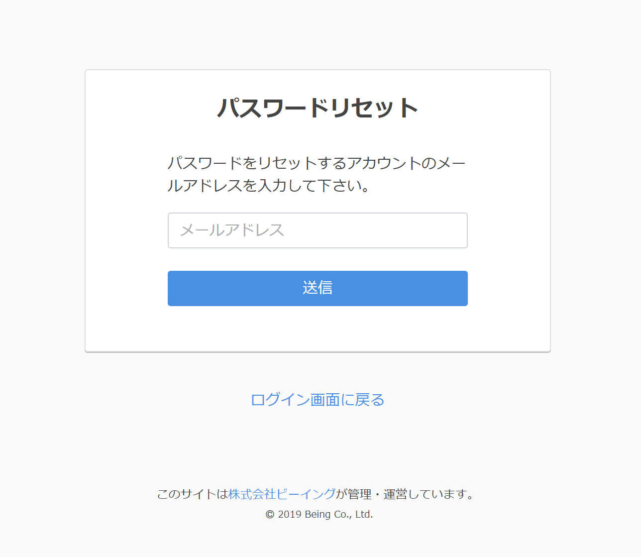 このパスワード再設定を表示するには、ログイン画面での「パスワードをお忘れですか?」ボタンをクリックして下さい。