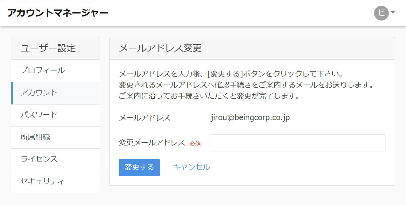 変更するメールアドレスを入力し「変更する」ボタンをクリックします。